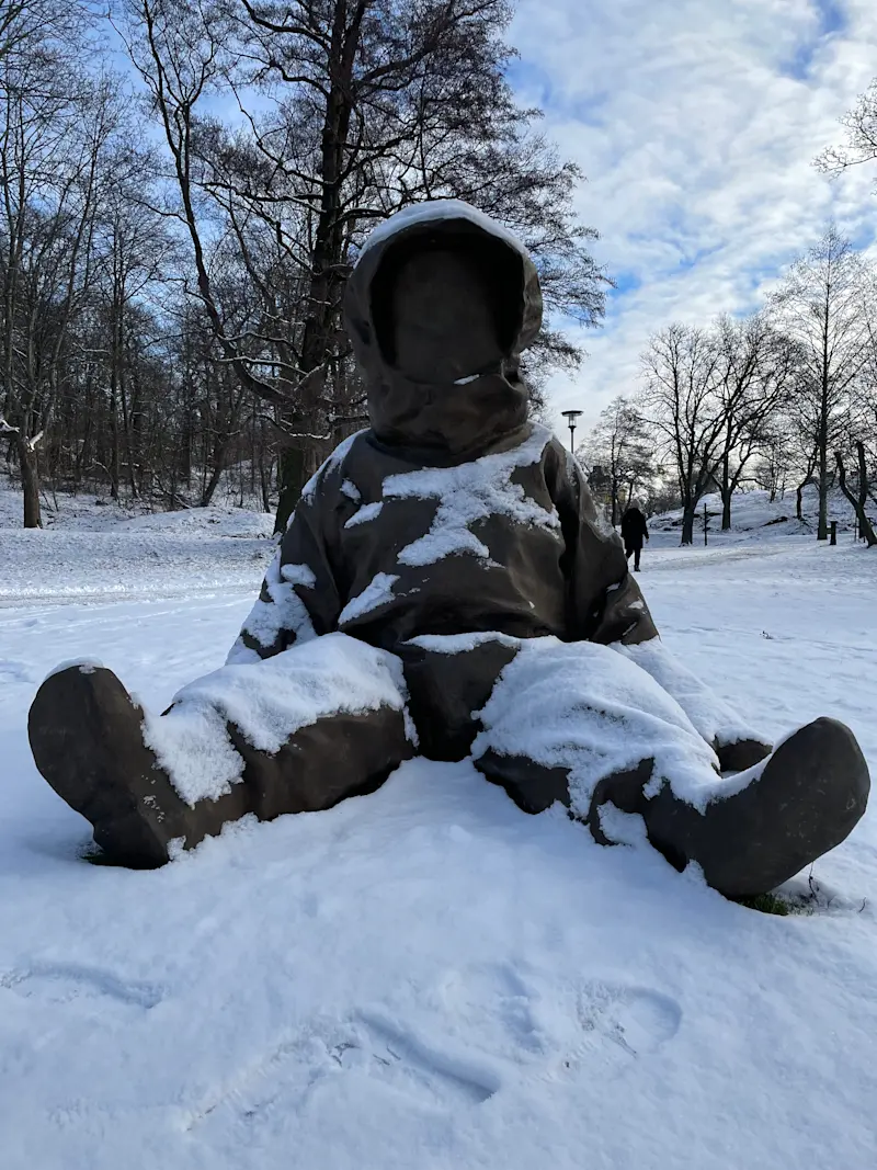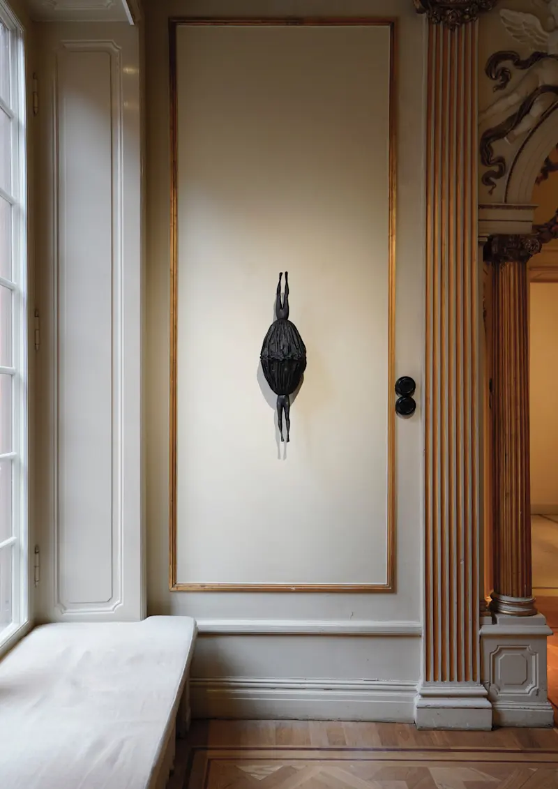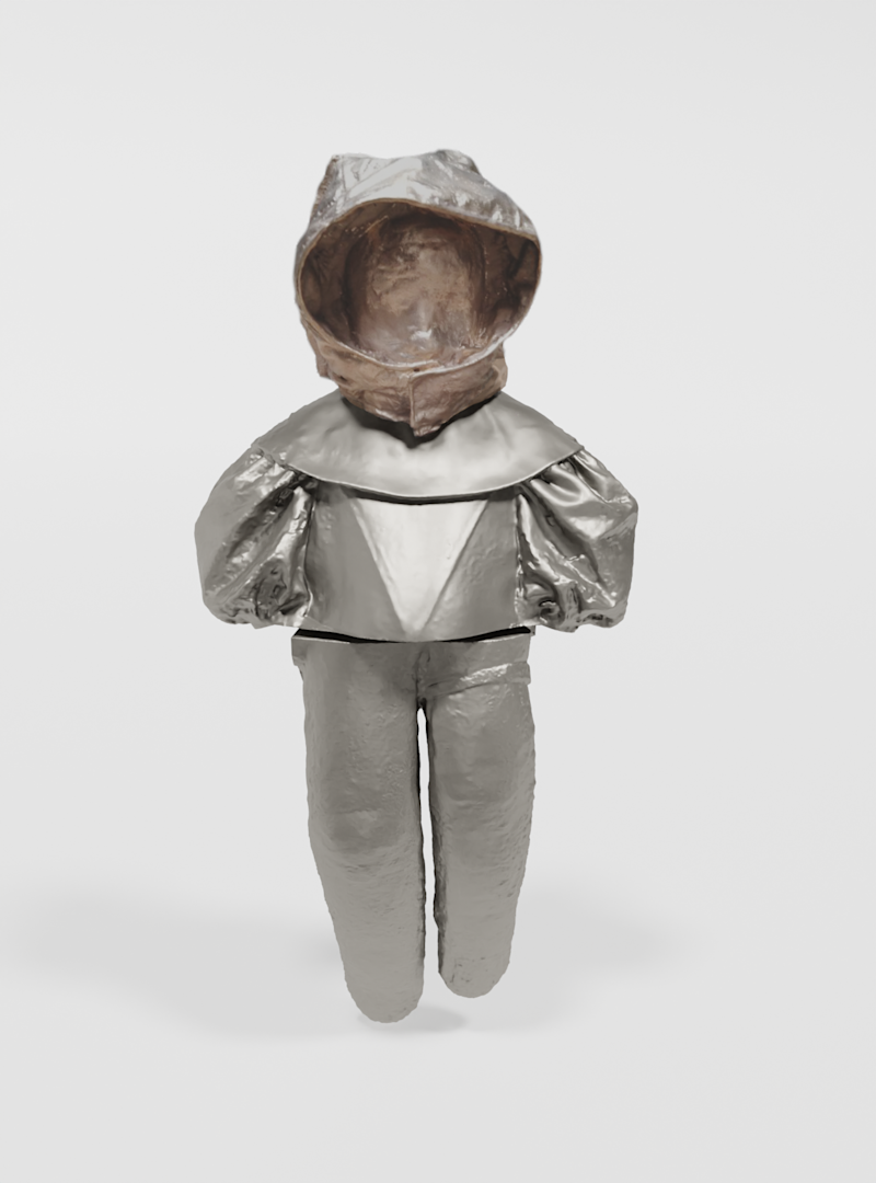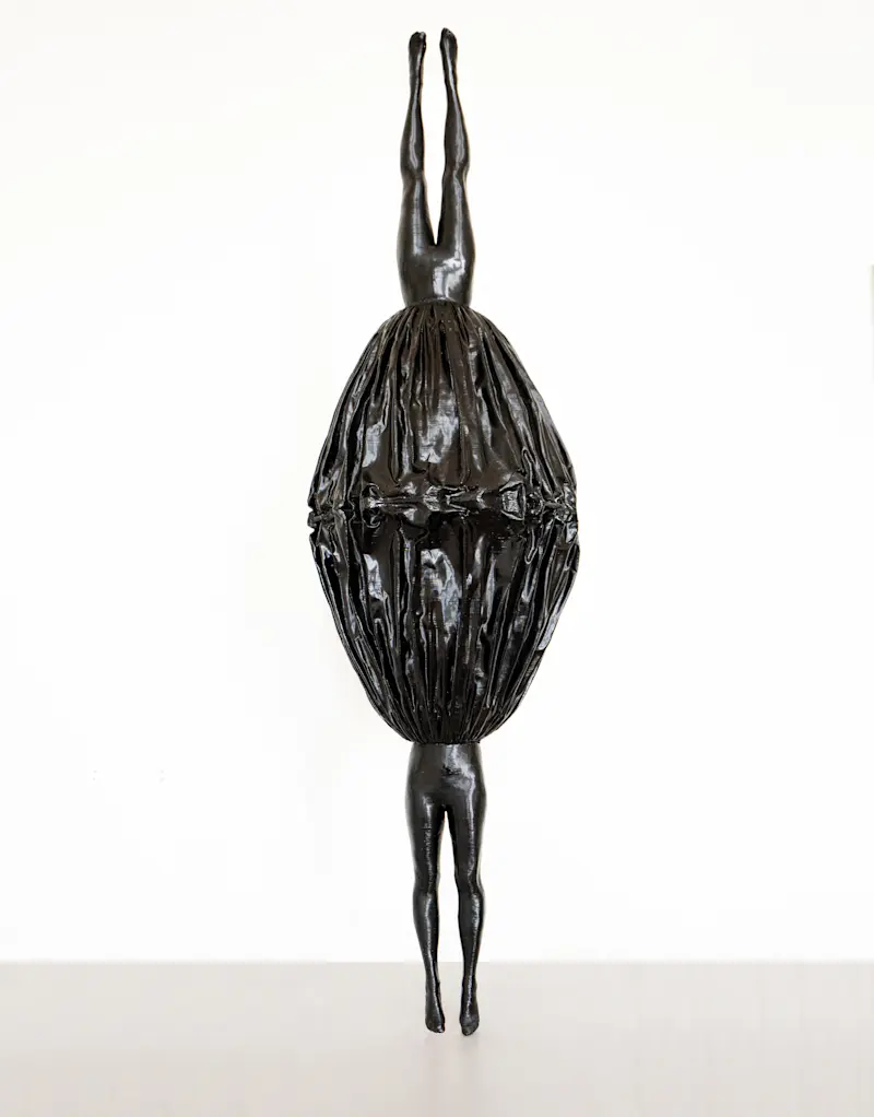 Charlotte Gyllenhammar’s work explores power, vulnerability, and identity. Her breakthrough came in 1993 with the monumental public installation Dö för dig (Die for you) – a 120-year-old oak tree suspended upside down in the heart of Stockholm. Since then, Gyllenhammar has produced work in several disciplines, including video, photography, and installation, but has truly excelled in the sculptural medium. She often revisits the same characters and motifs in her work, especially the child clad in a protective armour of overalls or the woman weighed down by layers of skirts and furs. While investigating deeply personal and intimate themes, Gyllenhammar will often, as with her debut, literally turn these on their heads to force a new perspective onto the viewer.