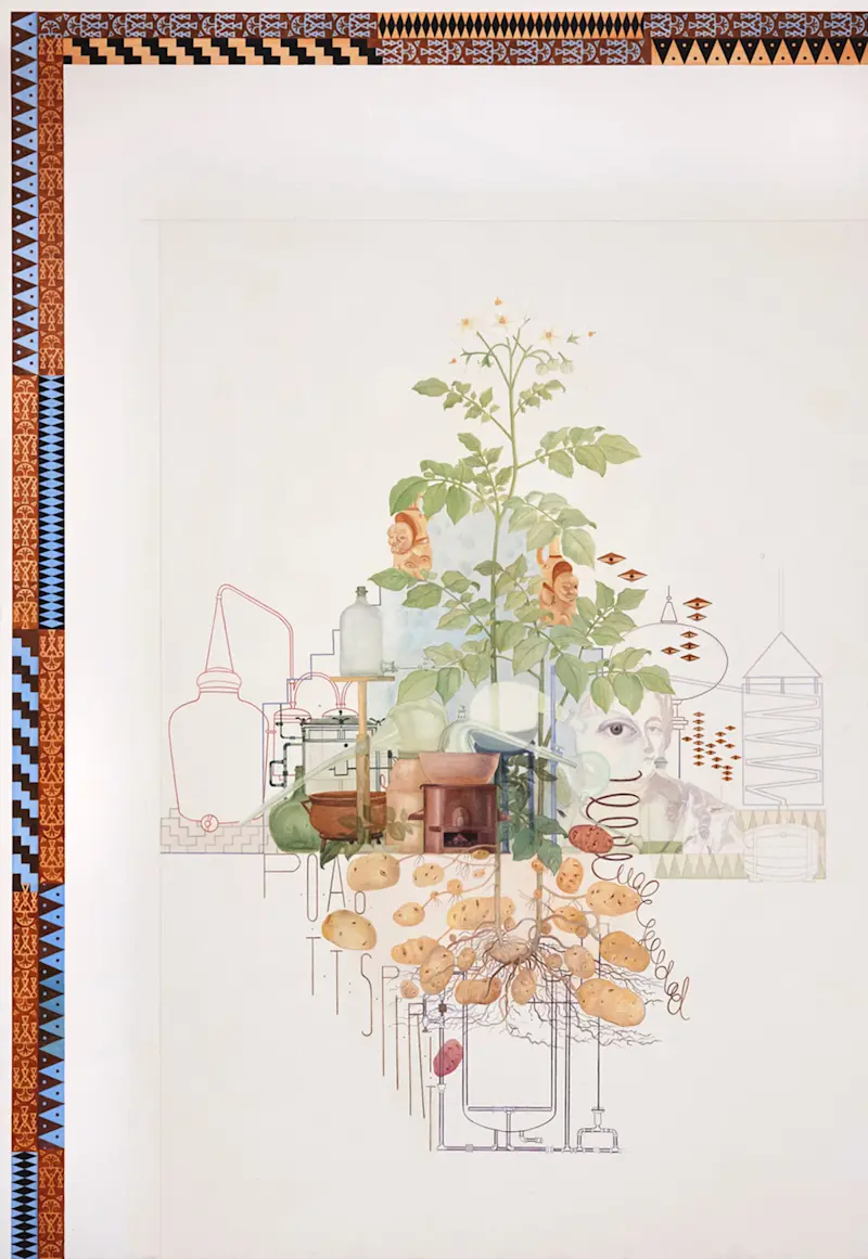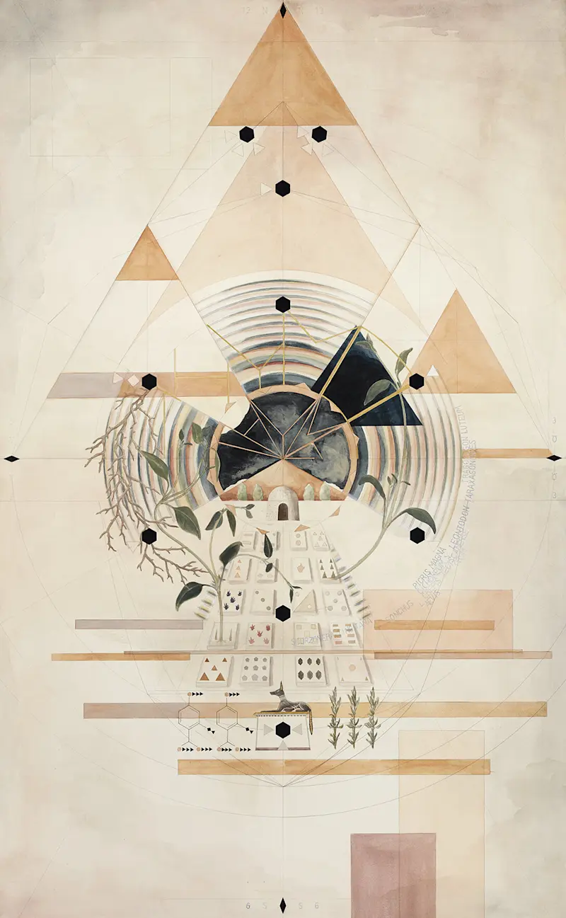 Christine Ödlund is a contemporary Swedish artist whose work combines hyperrealism and fantasy, often exploring the intersection between art and nature through the unique use of plant pigments. Her artistry is characterised by a deep curiosity and a mystical approach to her subjects. For example, Ödlund’s depiction of the swamp showcases an ability to curiously observe and reconsider her subject from endless new perspectives. At the same time, her mappings are philosophical, prompting questions about existentialism: What is humanity's place in nature? Can humans and nature coexist? What does it mean to die?