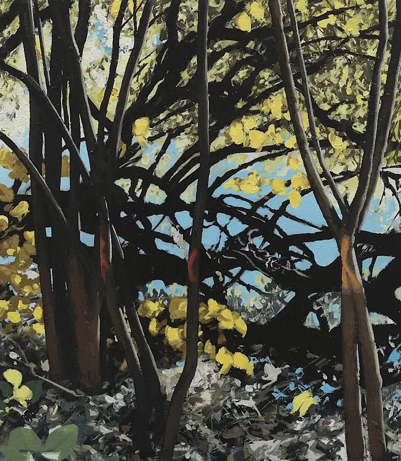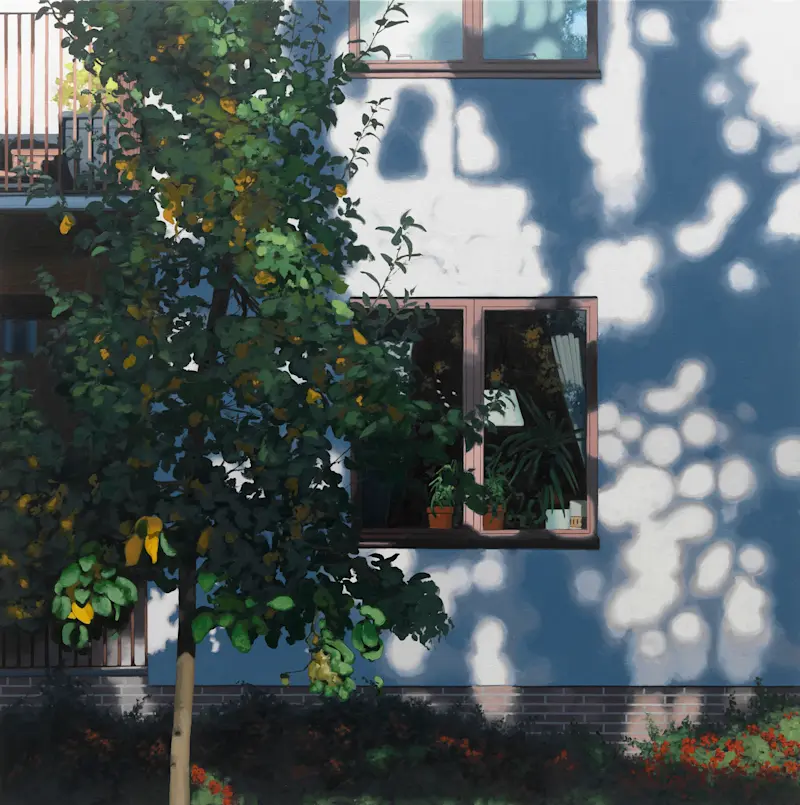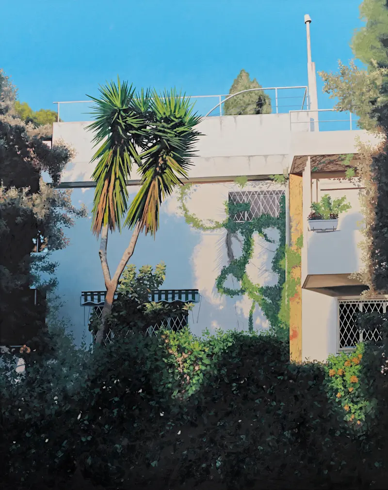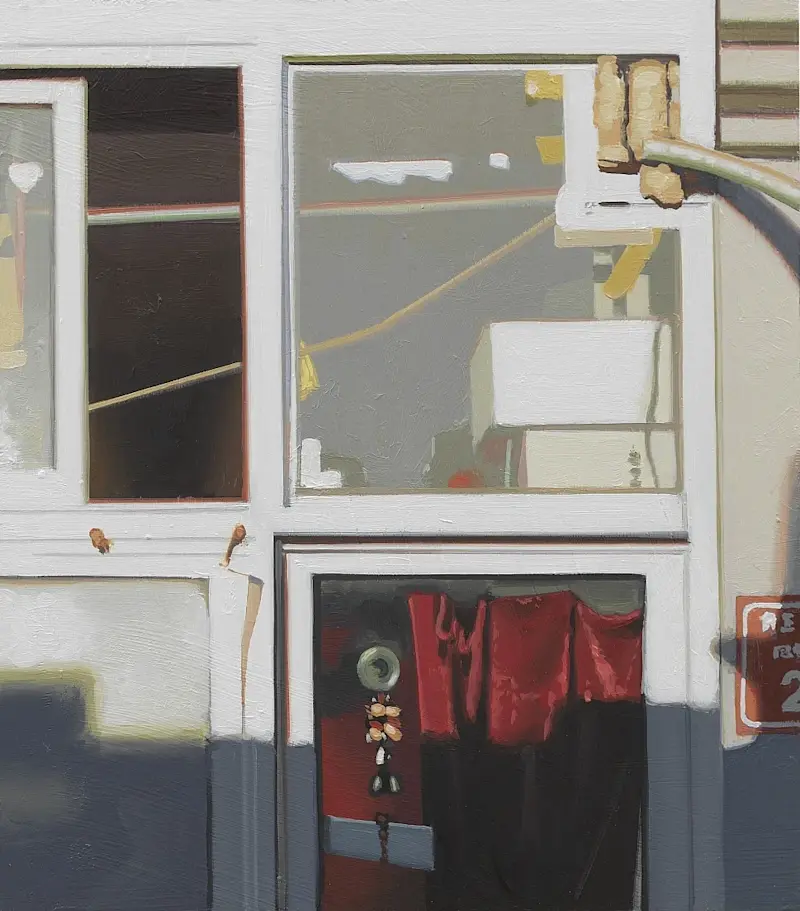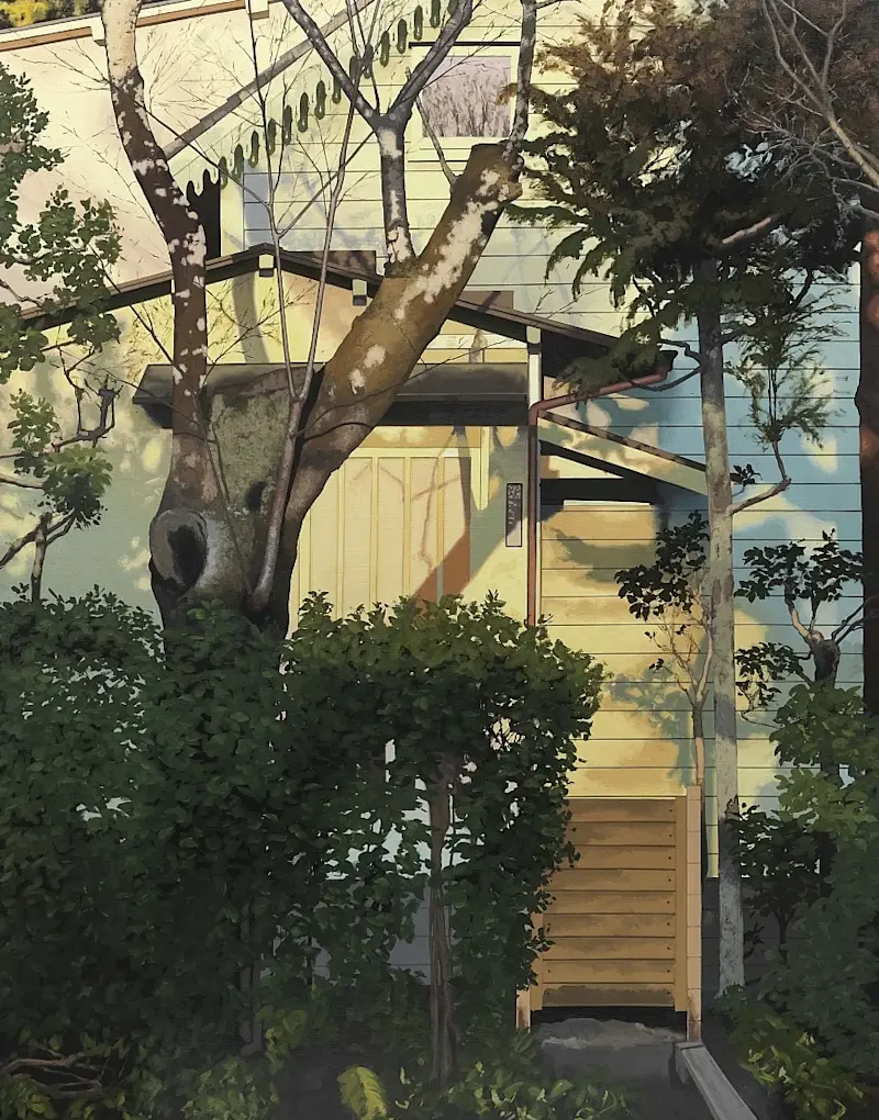 A recurring motif in his work is the depiction of architectural façades from various global locales. These structures, rendered with meticulous detail and reflective surfaces, evoke a sense of stillness and mystery, inviting viewers to contemplate the unseen narratives within.