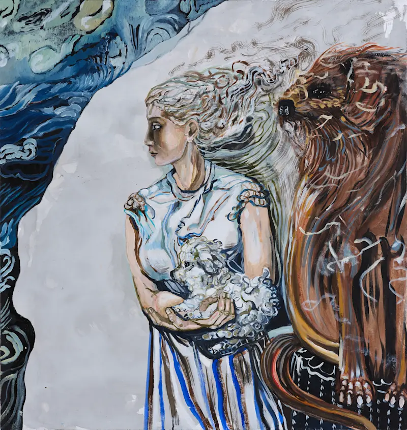 Meta Isæus-Berlin’s artistry is defined by a unique ability to blur the boundaries between dreams and reality, creating a psychoanalytical symbolism that is both ominous and illuminating. Her paintings weave new meanings from familiar stories and art history, incorporating fragments of domestic life, fairy tales, and spiritual elements into a rich tapestry of images. This distinctive approach was showcased in her solo exhibition "Nattlogik" at Waldemarsudde in 2019.